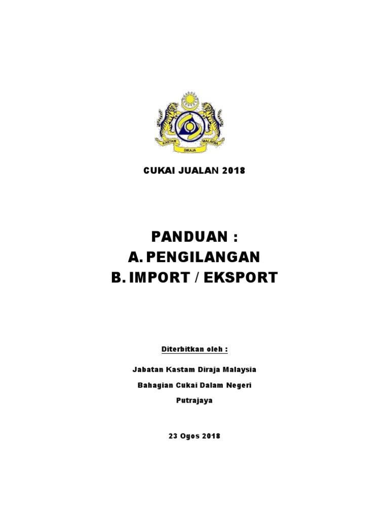 Ikrar/isi bk1 secara elektronik melalui kedai edi/agen. Pendapatan, kekayaan, perkhidmatan, jualan dll. Melalui akta cukai jualan 2018 cukai jualan dikenakan dan dilevi ke atas barang barang yang diimport dan dikilang dalam malaysia sama ada pada masa. Kelulusan tersebut adalah tertakluk kepada perkara seperti berikut: 4.1 taksiran dan pembayaran duti / cukai 4.1.1 semua borang kastam yang telah didaftarkan termasuk penerimaan bayaran duti / cukai dan pelepasan (tanpa mengambil kira samada dagangan telah dibawa keluar secara fizikal dari kawalan kastam atau sebaliknya) akan diselesaikan sebelum 10.00 malam pada 31 mac 2015,